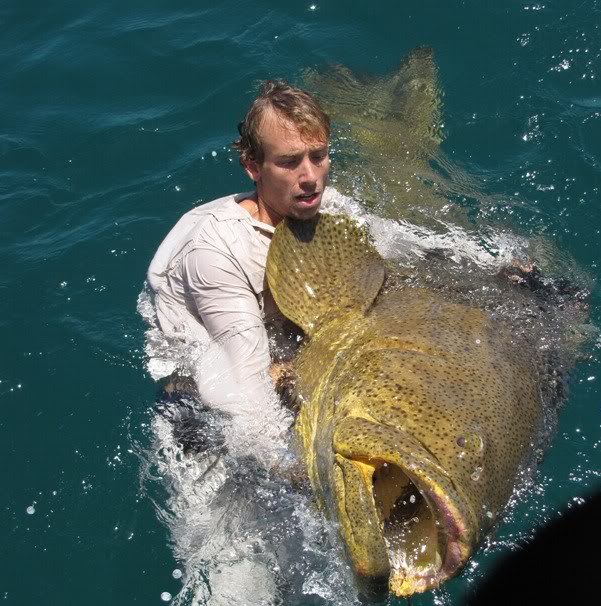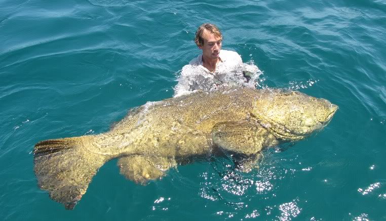 Pictured above is one way to catch giant grouper. Spool the whole rod with 500lb leader line...