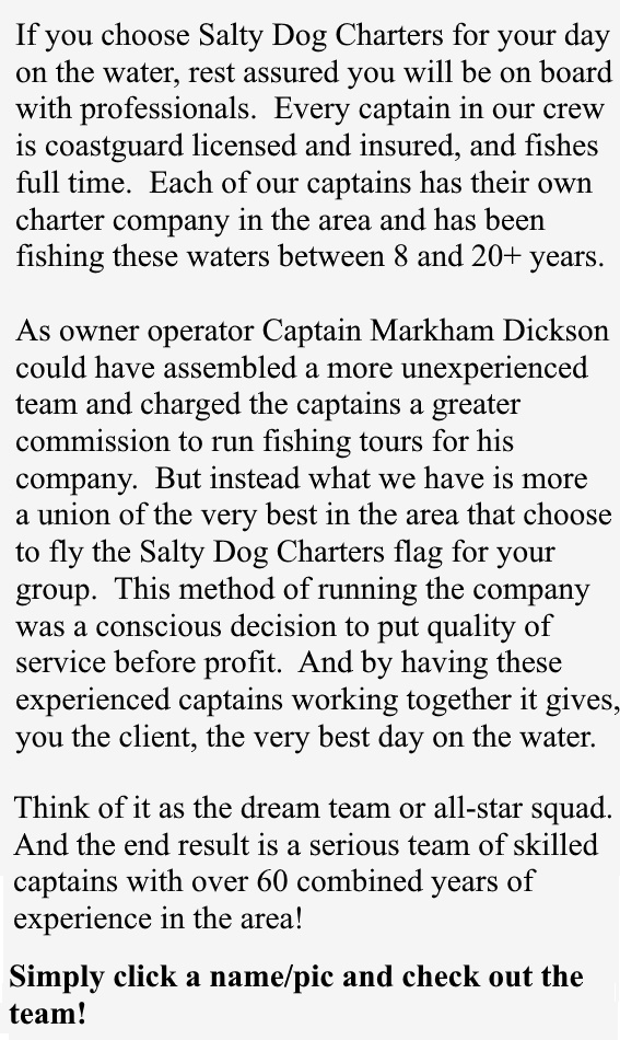These captains are not Salty Dog Charters LLC employees. They are a team assembled from the best in the area.