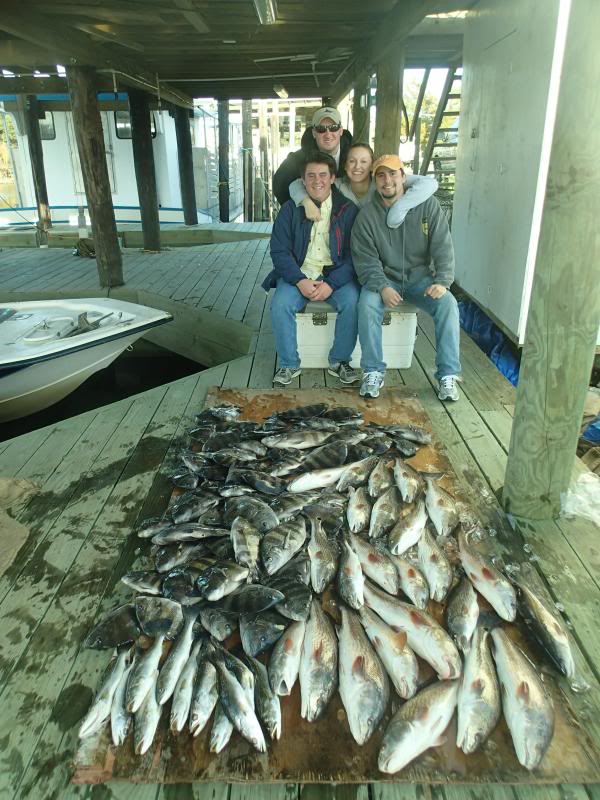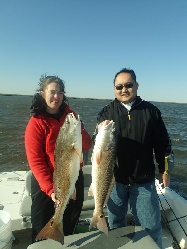 Winter is Big Redfish season! The huge mature fish inside not offshore! Nice hauls of sheepshead, puppy drum, and eating sized redfish are also caught in the wintertime.