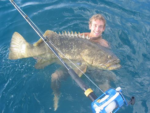 Pictured above is one way to catch giant grouper. Spool the whole rod with 500lb leader line...