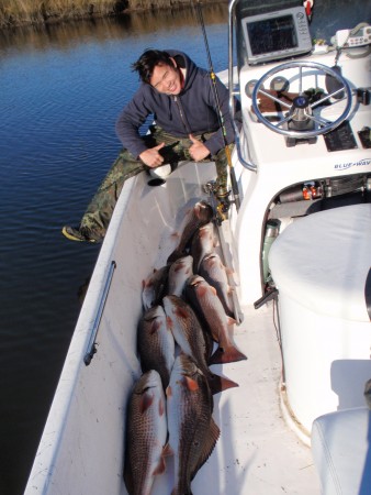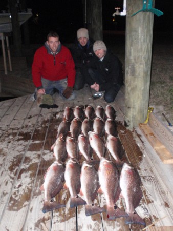 Winter is Big Redfish season! The huge mature fish inside not offshore! Nice hauls of sheepshead, puppy drum, and eating sized redfish are also caught in the wintertime.